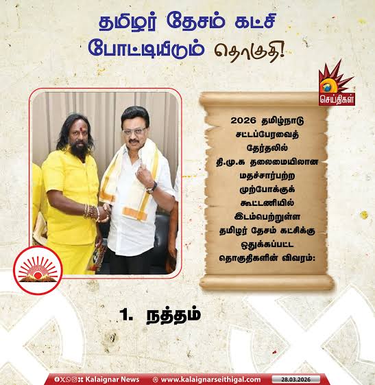 கடந்த முறை தான் பெற்ற 6 தொகுதிகளில் 4 வெற்றிகளை ஈட்டி, நாடாளுமன்றத் தேர்தலிலும் இரண்டுக்கு இரண்டும் வெற்றி பெற்று வேகமாக வளரும் விசிகவுக்கு இடம் வழங்குவது, அரசியல் கணக்குகளைத் தாண்டி அடிப்படை ஜனநாயக பொறுப்பு இல்லையா?
